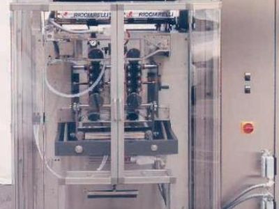 "Form-fill-seal" vertical packaging consisting of bags formed from coil of coupled film and polyethylene net. Available in standard version and stainless steel.